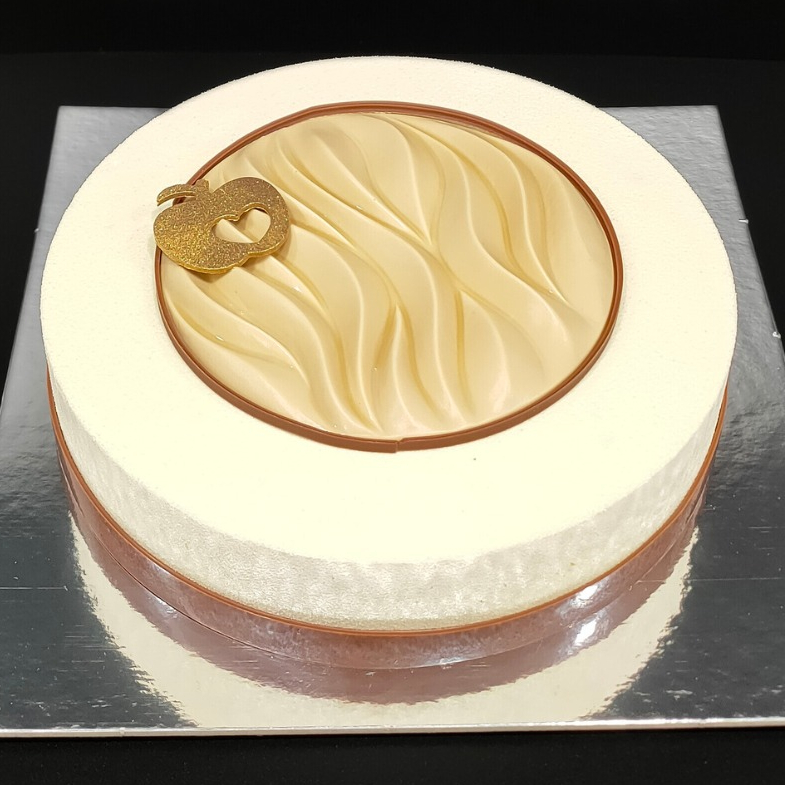 Mousse légère vanille, pommes fondantes, crémeux spéculoos, croustillant spéculoos,